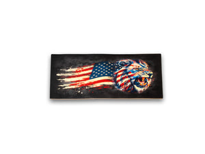 Muestra fuerza y patriotismo con nuestra cubierta de billetera bifold US Lion, que presenta un majestuoso diseño de cabeza de león combinado con la bandera de EE. UU. Elaborado con cuero curtido vegetal de primera calidad, este panel ofrece una calidad inigualable y un impacto visual impresionante, perfecto para crear billeteras únicas.