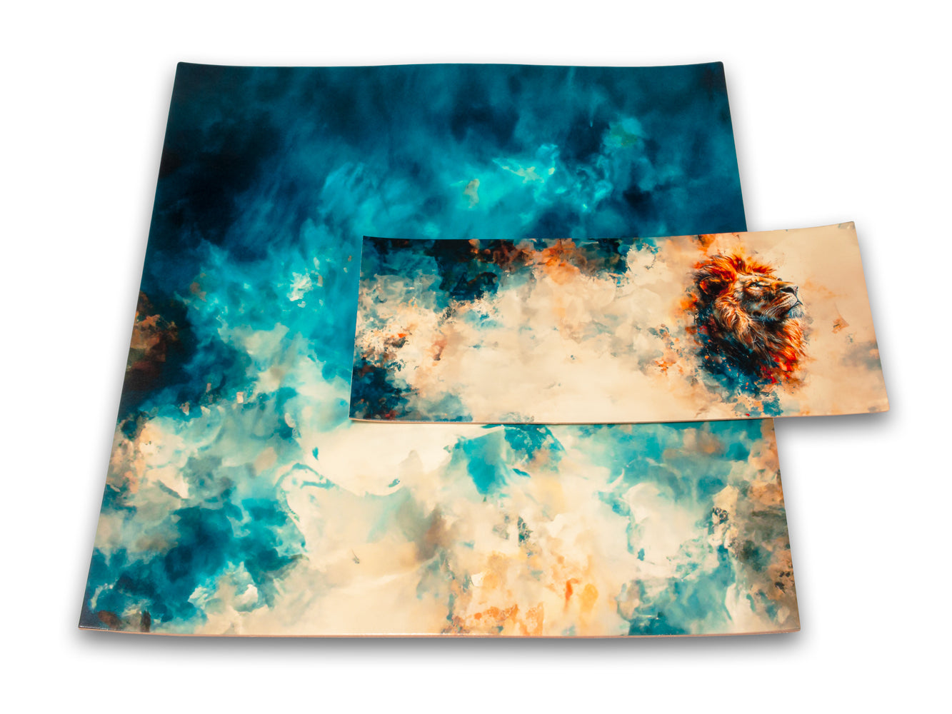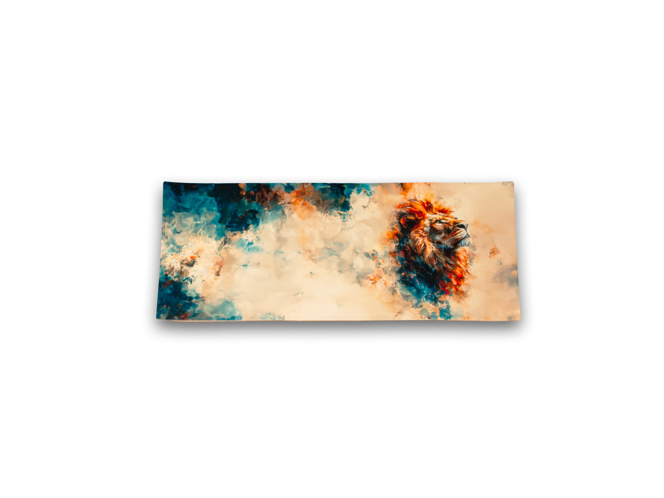 Progettato per creatori esigenti, questo pannello è realizzato in pelle conciata al vegetale di alta qualità, offrendo un motivo sorprendente e unico che esalta l'appeal senza tempo del design. Al centro c'è una straordinaria stampa di testa di leone, simbolo di forza, coraggio e leadership. I dettagli intricati della criniera e dell'espressione del leone sono resi con maestria, creando un punto focale accattivante che valorizza qualsiasi progetto.